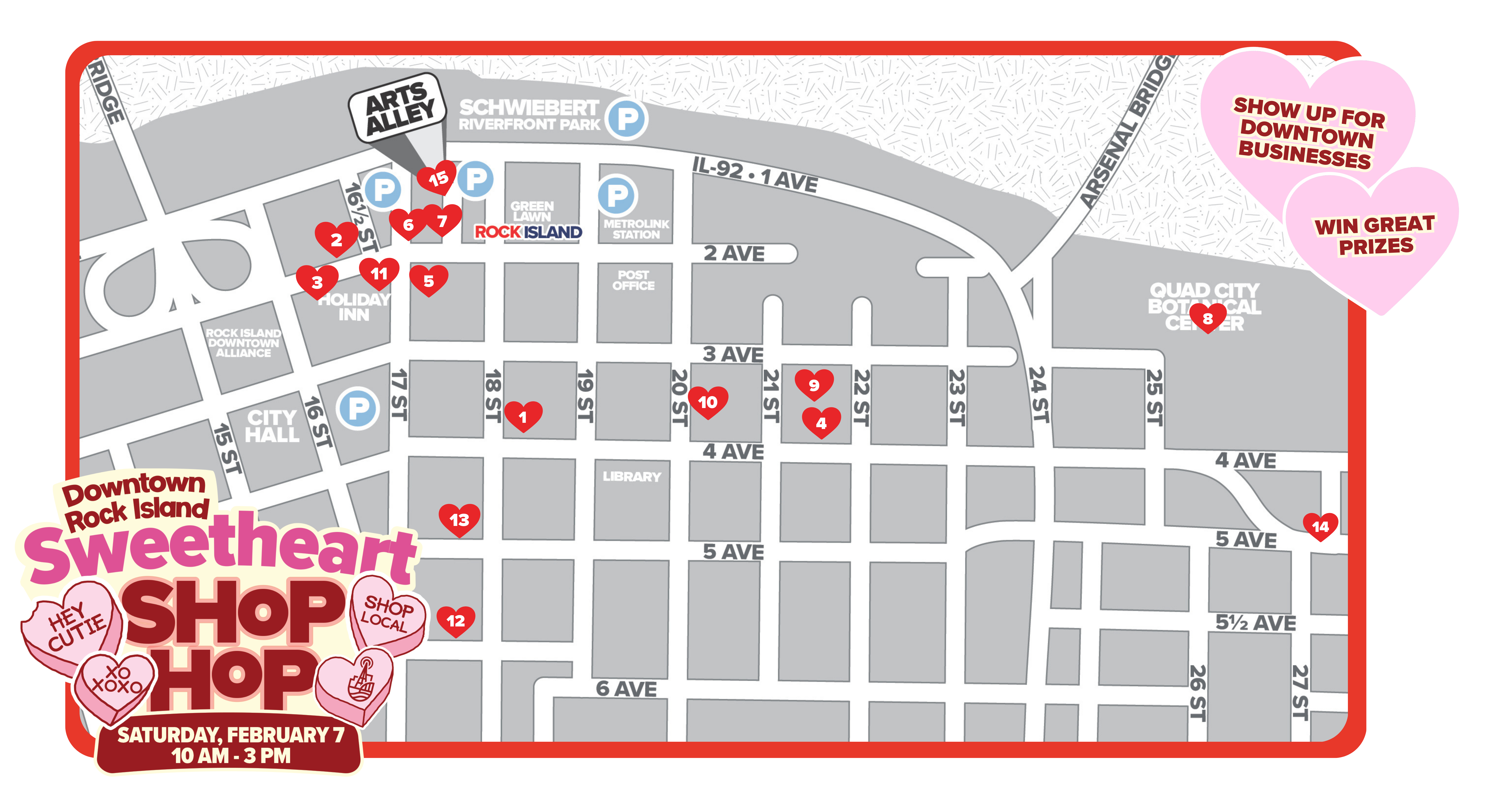 “The local businesses in our district create Downtown Rock Island’s melting pot of experiences, and the Sweetheart Shop Hop is a way to highlight some of these unique amenities and invite the community to show up for these businesses,” said Jack Cullen, Executive Director of the Downtown Alliance.